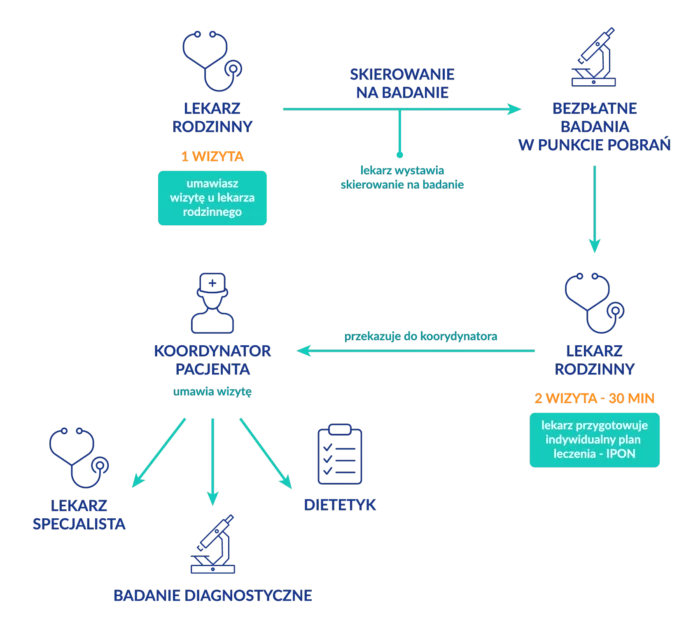 Nasi lekarze POZ w ramach opieki koordynowanej, mogą zlecać pacjentom badania, które dotychczas były zarezerwowane dla lekarza specjalisty. Leczenie oparte jest na Indywidualnym Planie Opieki Medycznej, obejmującym nie tylko badania, ale również konsultacje między lekarzem POZ a lekarzem specjalistą, a także dodatkowe porady, np. od dietetyka.